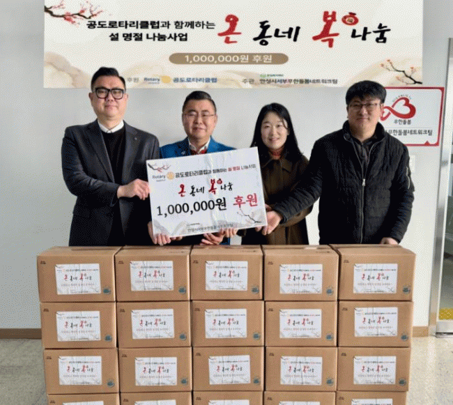 [NWS¹æ¼Û=Çѽ¸ñ ±âÀÚ]»çȸº¹Áö¹ýÀÎ Çѱ溹ÁöÀç´ÜÀÌ ¼öŹ ¿î¿µÇÏ´Â ¾È¼º½Ã¼ºÎ¹«Çѵ¹º½³×Æ®¿öÅ©ÆÀÀº ±¹Á¦·ÎŸ¸® 3600Áö±¸ °øµµ·ÎŸ¸®Å¬·´°ú Áö³ 12ÀÏ ¼³ ¸íÀý ³ª´®»ç¾÷ ¡®¿Âµ¿³× º¹³ª´®¡¯ ÈÄ¿ø±Ý 100¸¸ ¿ø Àü´Þ½ÄÀ» °¡Á³´Ù.