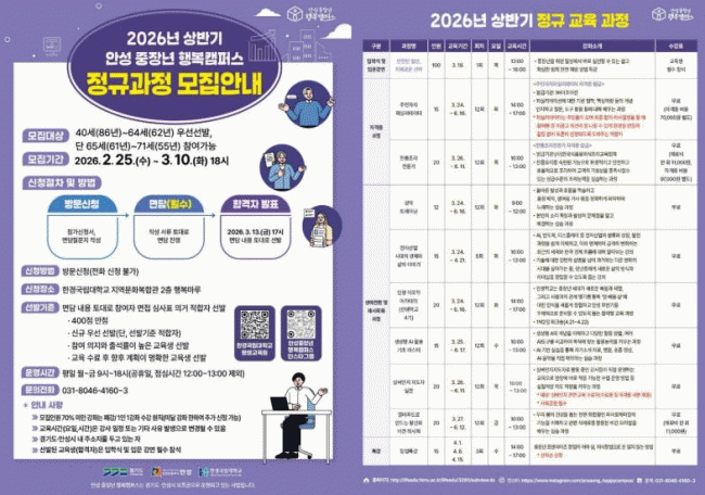 [NWS¹æ¼Û=Çѽ¸ñ ±âÀÚ]¾È¼º ÁßÀå³â ÇູķÆÛ½º(ÇѰ汹¸³´ëÇб³ Æò»ý±³À°¿ø)´Â 2¿ù 25ÀϺÎÅÍ 3¿ù 10ÀϱîÁö ¡®2026³â Á¤±Ô±³À°°úÁ¤¡¯ ¼ö°­»ýÀ» ¸ðÁýÇÑ´Ù°í ¹àÇû´Ù.