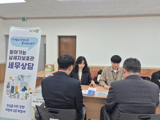 ½Ã´Â 3¿ùºÎÅÍ °ü³» 8°³ ÇàÁ¤º¹Áö¼¾Å͸¦ ¼øÈ¸Çϸç ÇöÀå »ó´ãⱸ¸¦ ¼³Ä¡ ¹× ¿î¿µÇÒ °èȹÀÌ´Ù. 5¿ù Á¾Çռҵ漼 ½Å°í ±â°£¿¡´Â ³²¾çÁÖ¼¼¹«¼­ µî °ü°è ±â°ü°ú Çù·ÂÇØ ÇöÀå¿¡¼­ ¼¼¹«»ó´ãÀ» Á¦°øÇÑ´Ù. ÀÌ¿Í ÇÔ²² ¹Î¿øÀ» Á¢¼öÇϰí ÇØ°á ¹æ¾ÈÀ» ¾È³»ÇØ ³³¼¼ÀÚÀÇ ½Ã°£Àû ºÎ´ãÀ» ÁÙÀδÙ.