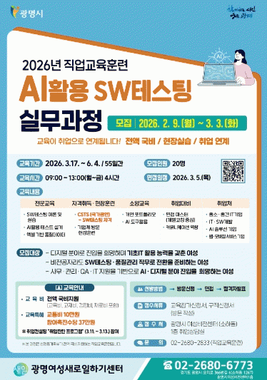 | ±¤¸í½Ã, ¡®AIȰ¿ë SWÅ×½ºÆÃ ½Ç¹«°úÁ¤¡¯ ÈÆ·Ã»ý ¸ðÁý µðÁöÅÐ Àüȯ ½Ã´ë, ǰÁúÀ» ¼³°èÇÏ´Â ¿©¼º Á¤º¸±â¼ú(IT) Àü¹®Àη ¾ç¼º =ÇãÀº¼ ±âÀÚ |