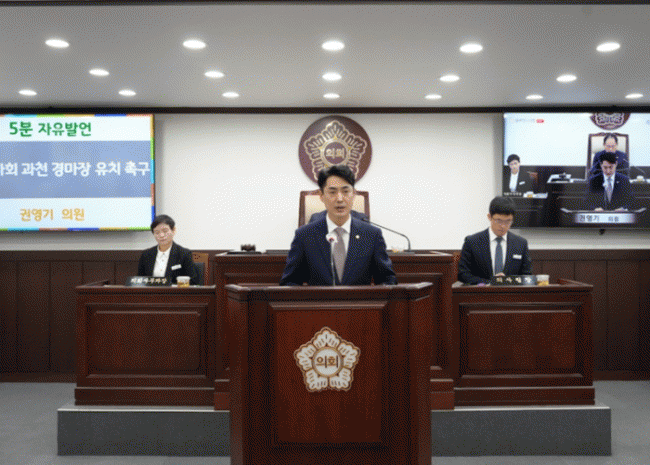| µ¿µÎõ½ÃÀÇȸ ±Ç¿µ±â ÀÇ¿ø, ¡°75³â ¾Èº¸ Èñ»ý º¸»ó, Çѱ¹¸¶»çȸ °æ¸¶Àå µ¿µÎõ À¯Ä¡Çؾߡ± Á¦344ȸ ÀÓ½Ãȸ 5ºÐ ÀÚÀ¯¹ß¾ð ÅëÇØ °æ¸¶Àå À¯Ä¡ °·Â Ã˱¸ =Çѽ¸ñ ±âÀÚ |