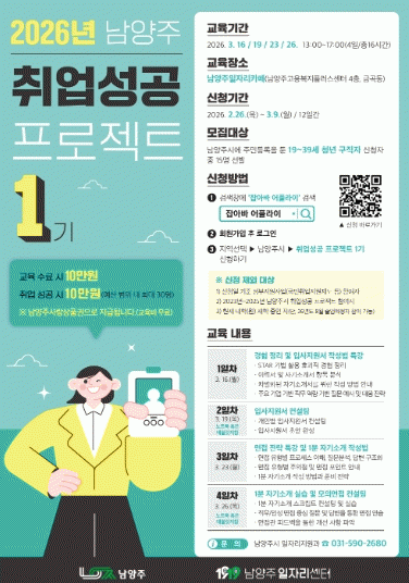 [NWS¹æ¼Û=ÇãÀº¼ ±âÀÚ]³²¾çÁֽô ¿À´Â 26ÀϺÎÅÍ Ã»³â ±¸Á÷ÀÚÀÇ Ãë¾÷ °æÀè·Â °È¸¦ À§ÇØ ¡®2026 Ãë¾÷¼º°ø ÇÁ·ÎÁ§Æ® 1±â¡¯Âü¿©ÀÚ¸¦ ¸ðÁýÇÑ´Ù°í ¹àÇû´Ù.