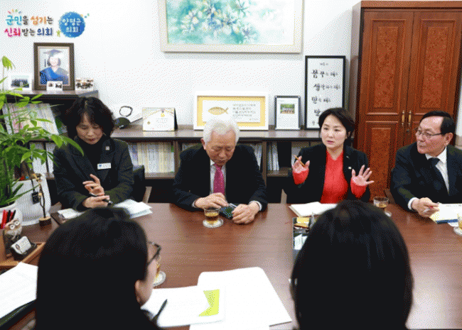 [NWS¹æ¼Û=Çѽ¸ñ ±âÀÚ]¾çÆò±ºÀÇȸ Áö¹ÎÈñ ÀÇ¿ø(±¹¹ÎÀÇ Èû)Àº Áö³ 23ÀÏ ¾çÆò±ºÀÇȸ ȸÀǽǿ¡¼ ¾çÆò±º °ü³»±â¾÷µé°ú Á÷Á¢ ¸¸³ª ±â¾÷ÀεéÀÇ ¾Ö·Î»çÇ×À» µè°í ¾ÕÀ¸·ÎÀÇ °³¼± ¹æÇâ¿¡ ´ëÇÑ ½Éµµ ÀÖ´Â ÀǰßÀ» ³ª´³´Ù.