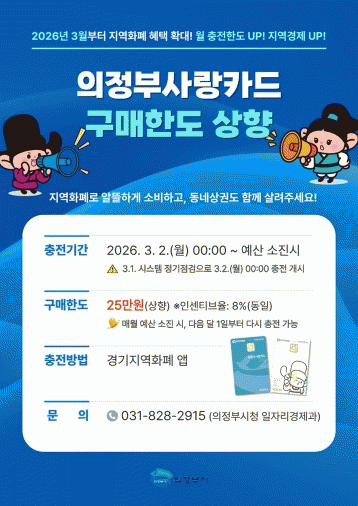 [NWS¹æ¼Û=ÇãÀº¼ ±âÀÚ]ÀÇÁ¤ºÎ½Ã´Â Áö¿ª°æÁ¦ Ȱ¼ºÈ¿Í ¹Î»ý ¾ÈÁ¤À» À§ÇØ 3¿ùºÎÅÍ ÀÇÁ¤ºÎ»ç¶ûÄ«µå(Áö¿ªÈÆó) ¿ù ±¸¸Å Çѵµ¸¦ ±âÁ¸ 15¸¸ ¿ø¿¡¼ 25¸¸ ¿øÀ¸·Î »óÇâÇÑ´Ù.
