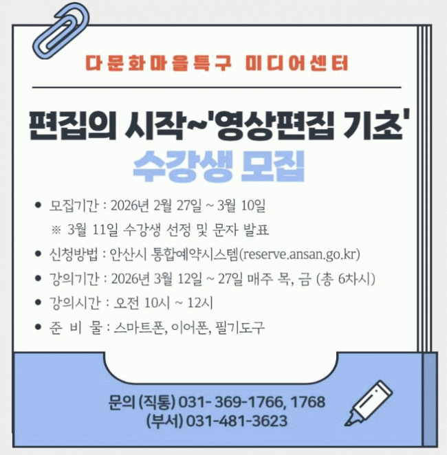 | ¾È»ê½Ã, ´Ù¹®È¸¶À»Æ¯±¸ ¹Ìµð¾î¼¾ÅÍ ¿µ»ó ÄÜÅÙÃ÷ Á¦ÀÛ ±³À°°úÁ¤ ¿î¿µ =Çѽ¸ñ ±âÀÚ |