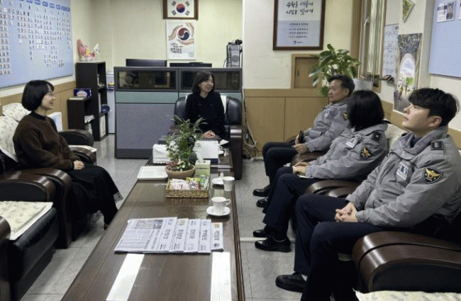 [NWS¹æ¼Û=Çѽ¸ñ ±âÀÚ]¼ö¿ø½Ã ÆÈ´Þ±¸ Çà±Ãµ¿Àº Áö³ 3ÀÏ Çà±ÃÆÄÃâ¼Ò ½ÅÀÓ ¹Ú¼þ°¢ ÆÄÃâ¼ÒÀåÀÇ ¹æ¹®À» ¸Â¾Æ µ¿ ÁÖ¿ä Çö¾È »çÇ×À» °øÀ¯Çϰí Áö¿ª ¾ÈÀü °È¸¦ À§ÇÑ Çù·Â ¹æ¾ÈÀ» ³íÀÇÇß´Ù.