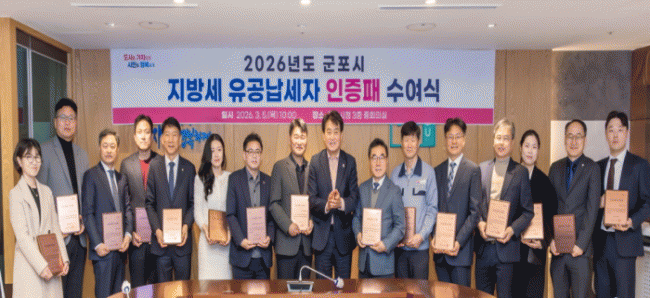 [NWS¹æ¼Û=Çѽ¸ñ ±âÀÚ]±ºÆ÷½Ã ÇÏÀºÈ£ ½ÃÀåÀº 3¿ù 5ÀÏ Áö¹æ¼¼¸¦ ¼º½ÇÇÏ°Ô ³³ºÎÇÏ¿© Áö¹æÀçÁ¤ È®Ãæ¿¡ ±â¿©ÇÑ À¯°ø³³¼¼ÀÚ 15°³ ¹ýÀο¡°Ô ¡®À¯°ø³³¼¼ÀÚ ÀÎÁõÆÐ¡¯¸¦ ¼ö¿©ÇÏ°í °¨»çÀÇ ¸¶À½À» ÀüÇß´Ù.