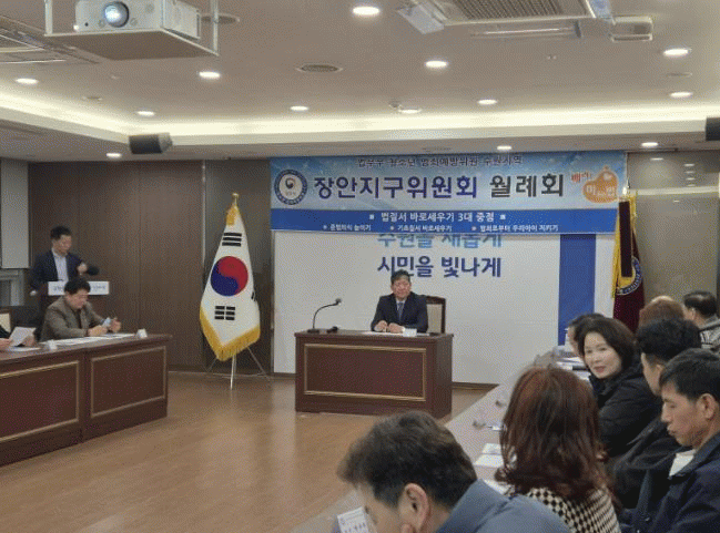 [NWS¹æ¼Û=Çѽ¸ñ ±âÀÚ]¼ö¿ø½Ã Àå¾È±¸´Â Áö³ 9ÀÏ, ¹ý¹«ºÎ û¼Ò³â ¹üÁË¿¹¹æÀ§¿ø Àå¾ÈÁö±¸À§¿øÈ¸ ¿ù·ÊȸÀǸ¦ °³ÃÖÇß´Ù.
