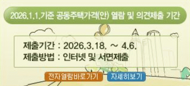 ¿­¶÷ ¹× ÀÇ°ß Ã»Ãë´Â ¿À´Â 3¿ù 18ÀϺÎÅÍ 4¿ù 6ÀϱîÁö ½Ç½ÃµÇ´Âµ¥, ºÎµ¿»ê °ø½Ã°¡°Ý ¾Ë¸®¹Ì³ª ÀÌõ½Ãû ¼¼Á¤°ú ¶Ç´Â °¢ À¾¸é ÇàÁ¤º¹Áö¼¾ÅÍ¿¡¼­ ¿­¶÷ÇÒ ¼ö ÀÖ´Ù. À̹ø °³º°ÁÖÅà ¿­¶÷ °¡°Ý¿¡ ÀǰßÀÌ ÀÖÀ» ¶§¿¡´Â ÁÖÅà ¼ÒÀ¯ÀÚ³ª ÀÌÇØ °ü°èÀÎÀÌ °³º°ÁÖÅð¡°Ý Àǰ߼­¿Í °³ÀÎÁ¤º¸¼öÁý¡¤À̿뵿ÀǼ­¸¦ ÀÛ¼ºÇÏ¿© ÀÌõ½Ãû ¼¼Á¤°ú ¶Ç´Â °¢ À¾.¸é ÇàÁ¤º¹Áö¼¾ÅÍ¿¡ Á¦ÃâÇÏ¸é µÈ´Ù.