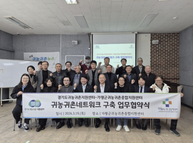 [NWS¹æ¼Û=Çѽ¸ñ ±âÀÚ]°¡Æò±º±Í³ó±ÍÃÌÁ¾ÇÕÁö¿ø¼¾ÅÍ¿Í °æ±âµµ±Í³ó±ÍÃÌÁö¿ø¼¾ÅÍ´Â 19ÀÏ °¡Æò ±³À°Àå¿¡¼ ±Í³ó±ÍÃÌ ³×Æ®¿öÅ© ±¸ÃàÀ» À§ÇÑ ¾÷¹«Çù¾à(MOU)À» ü°áÇß´Ù. À̹ø Çù¾àÀº ±Í³ó±ÍÃÌ Èñ¸ÁÀÚÀÇ ¾ÈÁ¤ÀûÀÎ ³óÃÌ Á¤ÂøÀ» Áö¿øÇÏ°í °æ±âµµ ³ó¾îÃÌÀÇ Áö¼Ó °¡´ÉÇÑ ¹ßÀüÀ» µµ¸ðÇϱâ À§ÇØ ¸¶·ÃµÆ´Ù.