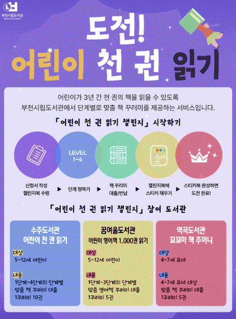 | ºÎõ½Ã, '¾î¸°ÀÌ Ãµ ±Ç Àбâ 縰Áö' È®´ë ¿î¿µ ¼öÁÖ¡¤²Þ¿©¿ï¡¤¿ª°îµµ¼°ü Âü¿©¡¦¿¬·Éº° ¸ÂÃã µ¶¼ Áö¿ø =Çѽ¸ñ ±âÀÚ |