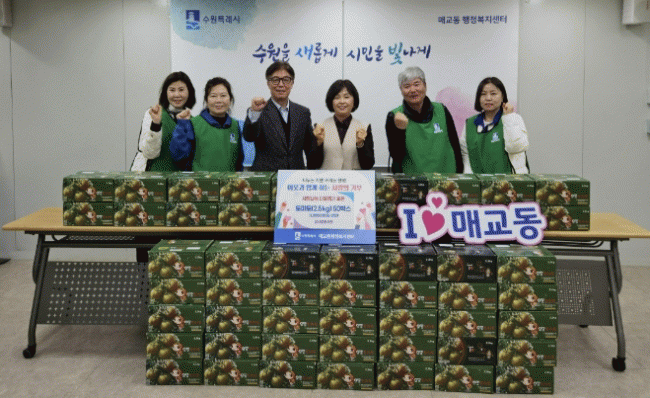 [NWS¹æ¼Û=Çѽ¸ñ ±âÀÚ]¼ö¿ø½Ã ÆÈ´Þ±¸ ¸Å±³µ¿Àº Áö³ 23ÀÏ, ¼ö¿ø½Ã ÆÈ»öÁ¶ ºÀ»ç´ÜÀ¸·ÎºÎÅÍ °ü³» ¾î·Á¿î ÀÌ¿ôÀ» À§ÇÑ ´ëÀúÅ丶Åä(2.5kg) 50¹Ú½º¸¦ Àü´Þ¹Þ¾Ò´Ù°í ¹àÇû´Ù.