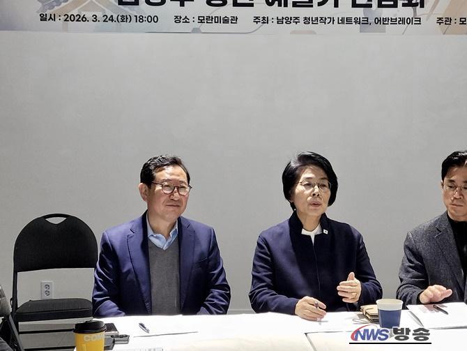 ±è ¿¹ºñÈ帴 Áö³ 24ÀÏ ÈµµÀ¾ ¸ð¶õ¹Ì¼ú°ü¿¡¼ ¿¸° ¡®³²¾çÁÖ Ã»³â¿¹¼ú°¡ °£´ãȸ¡¯¿¡ Âü¼®ÇØ Áö¿ª û³âÀÛ°¡µé°ú ¹®ÈÁ¤Ã¥ ¹æÇâÀ» ³íÀÇÇß´Ù. À̹ø °£´ãȸ´Â ³²¾çÁÖ Ã»³âÀÛ°¡ ³×Æ®¿öÅ©¿Í ¾î¹Ýºê·¹ÀÌÅ©°¡ °øµ¿ ÁÖÃÖÇßÀ¸¸ç, ÃÖ¹ÎÈñ ±¹È¸ÀÇ¿ø, Àå¿øÃ¶ ¾î¹Ýºê·¹ÀÌÅ© ´ëÇ¥, ±èº´Áø ´Ü±¹´ë Á¶¼Ò°ú ±³¼ö, Á¶ÀºÁ¤ ¸ð¶õ¹Ì¼ú°ü Çп¹½ÇÀå°ú ³²¾çÁÖ Áö¿ª û³âÀÛ°¡ 20¿© ¸íÀÌ Âü¼®Çß´Ù.