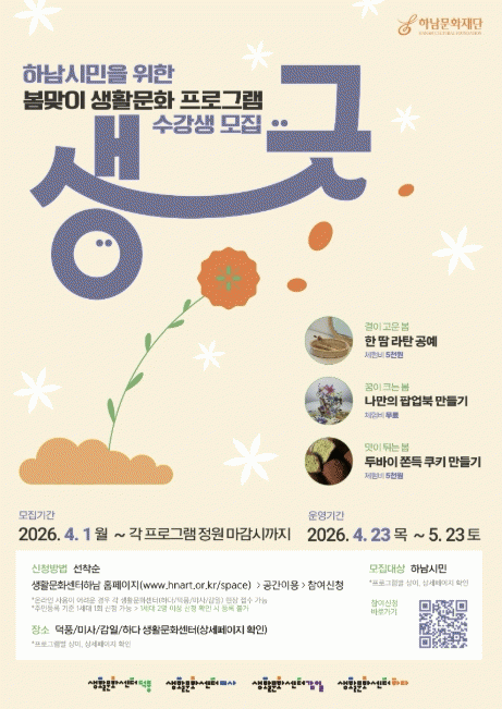¿À´Â 4¿ùºÎÅÍ 5¿ù±îÁö Çϳ²½Ã 4°³ »ýȰ¹®È¼¾ÅÍ(´ödz, ¹Ì»ç, °¨ÀÏ, ÇÏ´Ù)¿¡¼ º½¸ÂÀÌ ±âȹ ÇÁ·Î±×·¥ '»ý~±ß!'À» ¼±º¸ÀδÙ.