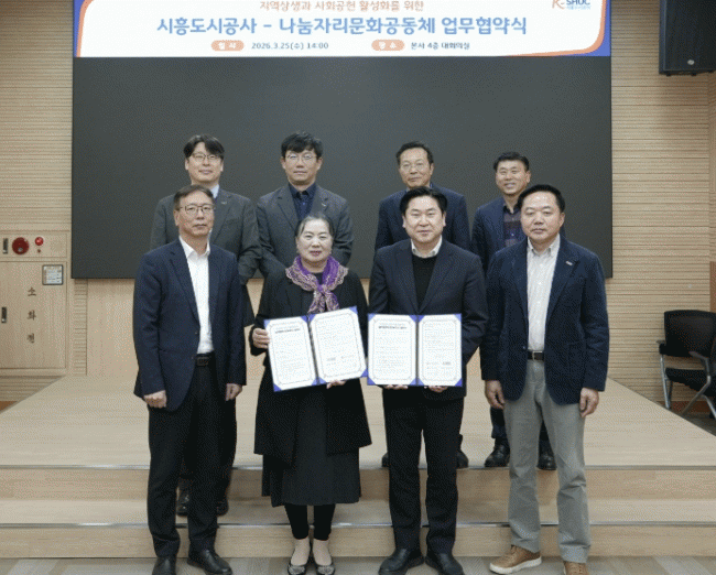 [NWS¹æ¼Û=Çѽ¸ñ ±âÀÚ]½ÃÈïµµ½Ã°ø»ç´Â Áö³ 25ÀÏ, ³ª´®ÀÚ¸®¹®È°øµ¿Ã¼¿Í Áö¿ª»ó»ý°ú »çȸ°øÇå Ȱ¼ºÈ¸¦ À§ÇÑ ¾÷¹«Çù¾àÀ» ü°áÇß´Ù°í ¹àÇû´Ù.