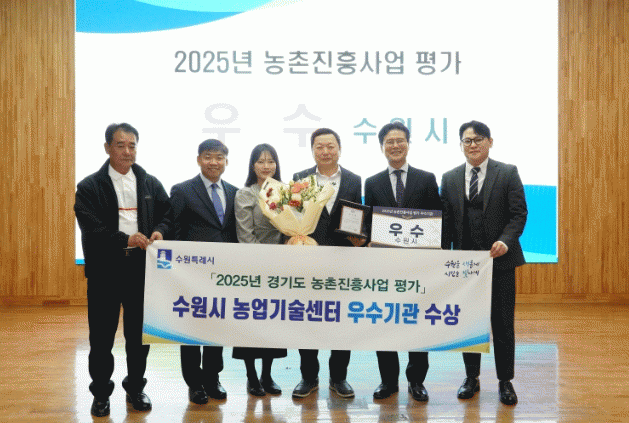[NWS¹æ¼Û=Çѽ¸ñ ±âÀÚ] ¼ö¿øÆ¯·Ê½Ã ³ó¾÷±â¼ú¼¾ÅͰ¡ ¡®2025³â °æ±âµµ ³óÃÌÁøÈï»ç¾÷ Æò°¡¡¯¿¡¼­ ¿ì¼ö ±â°üÀ¸·Î ¼±Á¤µÅ °æ±âµµÁö»ç ǥâÀ» ¹Þ¾Ò´Ù. ½Ã»óÀº 26ÀÏ ¿­¸° ½Ã±º³ó¾÷±â¼ú¼¾ÅͼÒÀå ¾÷¹«ÇùÀÇȸ Áß ÁøÇàµÆ´Ù.