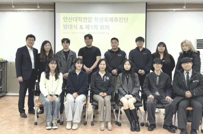 [NWS¹æ¼Û=Çѽ¸ñ ±âÀÚ]¾È»ê½Ã´Â °ü³» 5°³ ´ëÇÐ ÇлýµéÀÌ ÁÖµµÀûÀ¸·Î Âü¿©ÇÏ´Â ¡®Á¦4ȸ ¾È»êÀ¯´Ï¿ÂÆä½ºÆ¼¹ú¡¯ ÃßÁøÀ» À§ÇØ Áö³ 31ÀÏ Æò»ýºñÀü¼¾ÅÍ¿¡¼ ¡®¾È»ê´ëÇп¬ÇÕ ÇлýÃàÁ¦ÃßÁø´Ü¡¯ ¹ß´ë½ÄÀ» °³ÃÖÇß´Ù°í 1ÀÏ ¹àÇû´Ù.