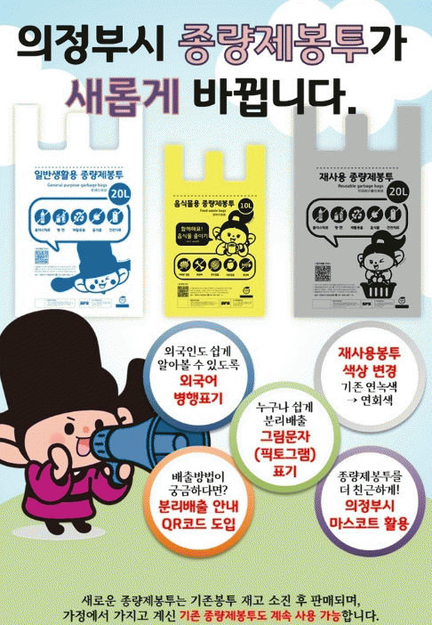 ÁÖ¿ä °³¼± »çÇ×Àº ¡ã´©±¸³ª ÇÑ´«¿¡ ¹èÃâ ±ÝÁö Ç׸ñÀ» ÀÌÇØÇÒ ¼ö ÀÖµµ·Ï ±×¸²¹®ÀÚ(ÇÈÅä±×·¥) µµÀÔ ¡ã¿Ã¹Ù¸¥ ºÐ¸®¹èÃâ ¿ä·ÉÀ» ¹Ù·Î È®ÀÎÇÒ ¼ö ÀÖµµ·Ï Á¤º¸¹«´Ì(QRÄÚµå) »ðÀÔ ¡ã¿Ü±¹ÀÎ ÁÖ¹ÎÀ» À§ÇÑ ´Ù±¹¾î º´Çà Ç¥±â ¡ãÀ½½Ä¹°ºÀÅõ¿Í È¥µ¿Çϱ⠽¬¿ü´ø Àç»ç¿ë Á¾·®Á¦ºÀÅõ »ö»óÀ» ¿¬È¸»öÀ¸·Î º¯°æ ¡ã½Ã¹Îµé¿¡°Ô Ä£±ÙÇÏ°Ô ´Ù°¡°¥ ¼ö ÀÖµµ·Ï ÀÇÁ¤ºÎ½Ã ¸¶½ºÄÚÆ® ¡®Àǵ¹ÀÌ¡¯¿Í ¡®¶ûÀÌ¡¯ Ȱ¿ë µîÀÌ´Ù.