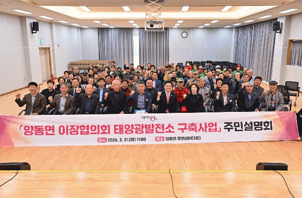 | ¾çÆò±º, '¾çµ¿¸é ÀÌÀåÇùÀÇȸ ž籤¹ßÀü¼Ò ±¸Ãà»ç¾÷' ¼³¸íȸ ¼º·á ž籤 ¹ßÀü¼öÀÍ ÅëÇÑ ¸¶À»±â±Ý Á¶¼º ¹× Áֹκ¹Áö¡¤°øµ¿Ã¼ Ȱ¼ºÈ ±â´ë =Çѽ¸ñ ±âÀÚ |