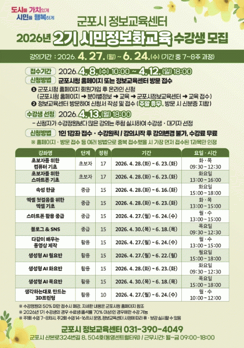 | ±ºÆ÷½Ã, 2026³â 2±â ½Ã¹ÎÁ¤º¸È±³À° ¼ö°»ý ¸ðÁý ½Ã¹Î µðÁöÅÐ ¿ª·® °È À§ÇÑ 11°³ °Á ¿î¿µ... ½Ã¹Î ´©±¸³ª Âü¿© °¡´É =Çѽ¸ñ ±âÀÚ |