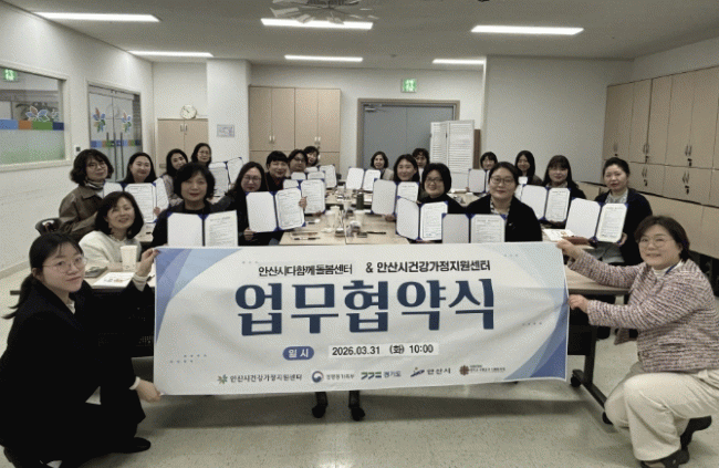 [NWS¹æ¼Û=Çѽ¸ñ ±âÀÚ]¾È»ê½Ã °Ç°°¡Á¤Áö¿ø¼¾ÅÍ´Â Áö³´Þ 31ÀÏ ¡®¾È»ê½Ã´ÙÇÔ²²µ¹º½¼¾ÅÍ¡¯¿Í ¾Æµ¿ µ¹º½ Áö¿ø°ú °¡Á·±â´É °È, °Ç°ÇÑ °¡Á·¹®È È®»êÀ» À§ÇÑ ¾÷¹« Çù¾àÀ» ü°áÇß´Ù°í 2ÀÏ ¹àÇû´Ù.