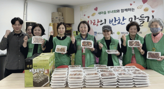¸Åź4µ¿ »õ¸¶À»ºÎ³àȸ´Â ¡®»ç¶ûÀÇ ¹ÝÂù ¸¸µé±â¡¯ »ç¾÷À» ÅëÇØ ¸Å¿ù 1ȸ µ¹º½ÀÌ ÇÊ¿äÇÑ °¡±¸¿¡ ¹ÝÂùÀ» Àü´ÞÇϸç ÀÌ¿ô °£ Á¤À» ³ª´©°í ¼Ò¿Ü°èÃþ¿¡ ´ëÇÑ °ü½ÉÀ» ³ôÀÌ¸ç »ç¶ûÀÌ ³ÑÄ¡´Â »êµå·¡¹Ì ¸¶À» ¸Åź4µ¿ Á¶¼º¿¡ ±â¿©Çϰí ÀÖ´Ù.
