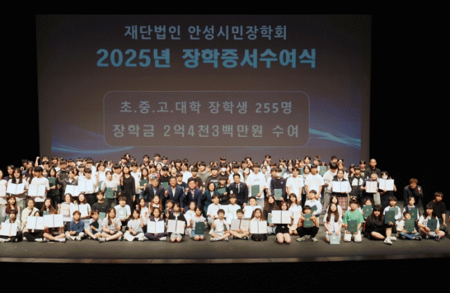 | ¾È¼º½Ã¹ÎÀåÇÐȸ, 2026³â Á¤±Ô ÀåÇлý 255¸í ¼±¹ß, ÃÑ 2¾ï 4,300¸¸¿ø ±Ô¸ð =Çѽ¸ñ ±âÀÚ |