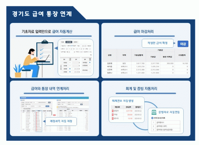 [NWS¹æ¼Û=ÇãÀº¼­ ±âÀÚ]°æ±âµµ°¡ ¾î¸°ÀÌÁý ȸ°èÀÇ Åõ¸í¼ºÀ» ³ôÀ̱â À§ÇØ ±³Á÷¿ø ±Þ¿©¸¦ ½ÇÁ¦ ÅëÀå °Å·¡ ±âÁØÀ¸·Î ÀÚµ¿ ¿¬°èÇÏ´Â ±â´ÉÀ» Àü±¹ ÃÖÃÊ·Î µµÀÔÇß´Ù.