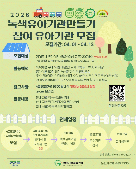 | "¾î¸± Àû ³ì»ö ½À°üÀÌ Æò»ý °£´Ù" °æ±âµµ, 13ÀϱîÁö '³ì»öÀ¯¾Æ±â°ü' 200°÷ ¸ðÁý 4.2~4.13.±îÁö À¯¾Æ±â°üÀ» Áß½ÉÀ¸·Î ³ì»ö¼Òºñ¹®È È®»êÀ» À§ÇÑ Âü¿©±â°ü ¸ðÁý =Çѽ¸ñ ±âÀÚ |