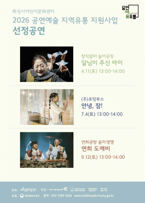 [NWS¹æ¼Û=Çѽ¸ñ ±âÀÚ]È­¼º½Ã¾î¸°À̹®È­¼¾ÅͰ¡ ¡®2026 °ø¿¬¿¹¼ú Áö¿ªÀ¯Åë Áö¿ø»ç¾÷¡¯¿¡ ¼±Á¤µÅ ¾î¸°À̸¦ À§ÇÑ °ø¿¬ 3ÆíÀ» ¼±º¸ÀδÙ.
