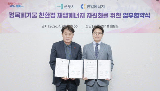 [NWS¹æ¼Û=Çѽ¸ñ ±âÀÚ]±ºÆ÷½Ã´Â µµ½Ã½£¡¤°¡·Î¼ö µîÀÇ Á¶¼º ¹× °ü¸® »ç¾÷ Áß ¹ß»ýÇÏ´Â ¹ÌÀÌ¿ë »ê¸² »ê¹°À» ģȯ°æ Àç»ý¿¡³ÊÁö·Î ÀÚ¿øÈ­ÇÏ¿© Æó±â¹° ó¸® ºñ¿ëÀ» Àý°¨Çϰí ź¼ÒÁ߸³ ½ÇÇö¿¡ ±â¿©ÇÒ ¼ö ÀÖµµ·Ï 4¿ù 9ÀÏ ½Ãû 1Ãþ ȸÀǽǿ¡¼­ ¢ßõÀÏ¿¡³ÊÁö¿Í ¾÷¹«Çù¾àÀ» ü°áÇß´Ù.
