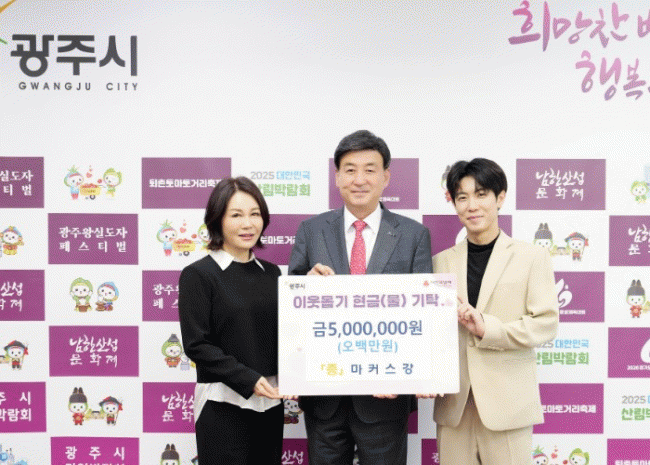 [NWS¹æ¼Û=Çѽ¸ñ ±âÀÚ]±¤Áֽà ȫº¸´ë»ç ¸¶Ä¿½º°­(º»¸í °­¿øÈÖ)Àº 10ÀÏ ±¤ÁÖ½ÃûÀ» ¹æ¹®ÇØ Áö¿ª ³» ¾î·Á¿î ÀÌ¿ôÀ» µ½±â À§ÇÑ ¼º±Ý 500¸¸ ¿øÀ» ±âŹÇß´Ù.