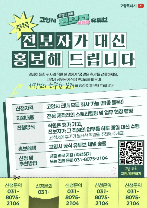 Âü¿© ½Åû ¶Ç´Â ÃßõÇÏ·Á´Â ±â¾÷¡¤ÀÏÅÍÀÇ °ü°èÀÚ´Â °í¾ç½Ãû ¾ð·ÐÈ«º¸´ã´ç°ü ¿µ»óÈ«º¸ÆÀ(031-8075-2104)À¸·Î ÀüÈÇϰųª, Æ÷½ºÅÍ Å¥¾ËÄڵ带 ÅëÇØ Áö¿ø¡¤ÃßõÇÏ¸é µÈ´Ù.