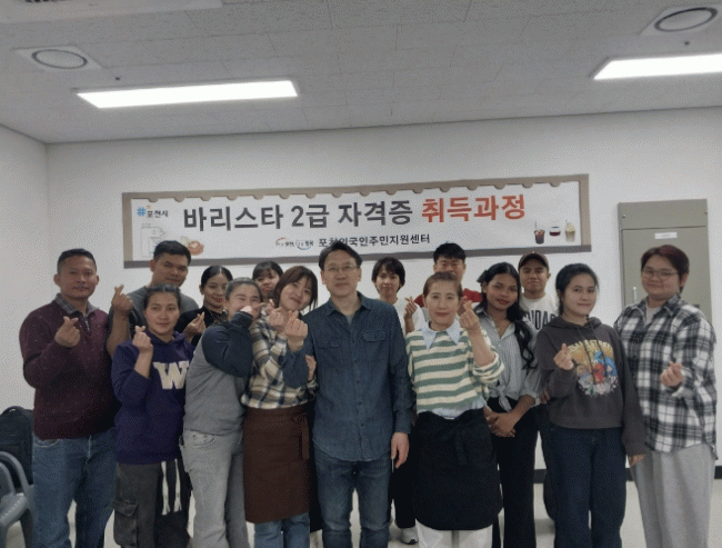 À̹ø °úÁ¤¿¡´Â įº¸µð¾Æ, º£Æ®³², Áß±¹, ¹Ì¾á¸¶ µî ´Ù¾çÇÑ ±¹ÀûÀÇ ¿Ü±¹ÀÎ ÁֹΠ15¸íÀÌ Âü¿©Çß´Ù. Æ÷õ½Ã´Â ¾ð¾î À庮À¸·Î ÀÎÇÑ ÇнÀ ¾î·Á¿òÀ» ÁÙÀ̱â À§ÇØ Æ÷õ¿Ü±¹ÀÎÁÖ¹ÎÁö¿ø¼¾ÅÍ ¼Ò¼Ó Å뿪»ó´ã»ç 3¸íÀ» ¼ö¾÷¿¡ ¹èÄ¡ÇØ ±³À° È¿°ú¸¦ ³ô¿´´Ù. ±× °á°ú ½ÅûÀÚ 15¸í Áß 14¸íÀÌ °úÁ¤À» À̼öÇÏ°í ¹Ù¸®½ºÅ¸ 2±Þ ÀÚ°ÝÁõÀ» ÃëµæÇÏ´Â ¼º°ú¸¦ °Åµ×´Ù.