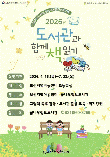 [NWS¹æ¼Û=Çѽ¸ñ ±âÀÚ]µ¿µÎõ½Ã ²Þ³ª¹«Á¤º¸µµ¼°üÀº ¿À´Â 4¿ù 16ÀϺÎÅÍ º¸»êÁö¿ª¾Æµ¿¼¾ÅÍ ÃʵîÇлýµéÀ» ´ë»óÀ¸·Î ¡®2026³â µµ¼°ü°ú ÇÔ²² Ã¥ Àб⡯ »ç¾÷À» ½ÃÀÛÇÑ´Ù°í ¹àÇû´Ù.