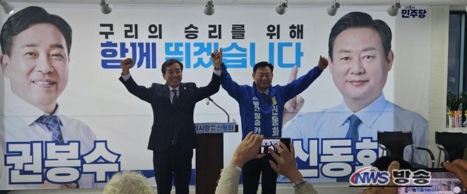 (NWS¹æ¼Û=Çѽ¸ñ ±âÀÚ)14ÀÏ ¿ÀÈÄ2½Ã ±¸¸®½Ã ´õºÒ¾î¹ÎÁÖ´ç ½Åµ¿È ¼±°Å»ç¹«¼Ò¿¡¼ ½Åµ¿È¿Í ±ÇºÀ¼ö´Â ±¸¸®ÀÇ ´õ Å« º¯È¿Í ´õ È®½ÇÇÑ ½Â¸®¸¦ À§ÇØ ±¸¸®½ÃÀå °æ¼±°úÁ¤¿¡ ÈûÀ» ÇÕÇϱâ·Î °øµ¿ ¼±¾ð¹®À» ¹ßÇ¥ Çß´Ù