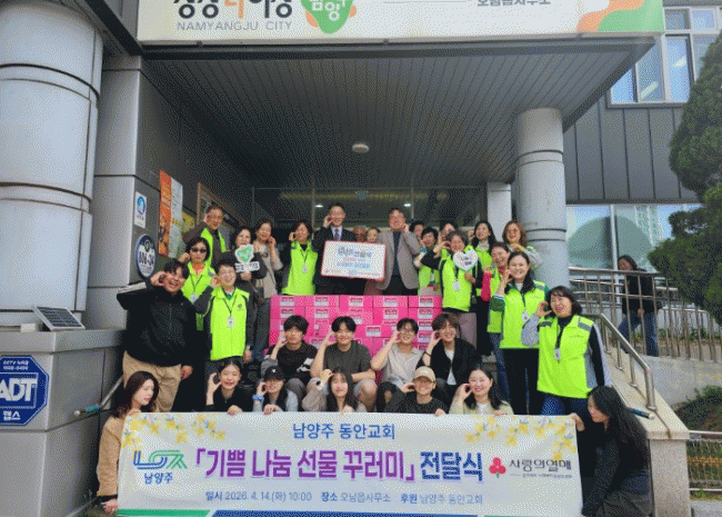 [NWS¹æ¼Û=Çѽ¸ñ ±âÀÚ]³²¾çÁֽô 14ÀÏ ³²¾çÁÖ µ¿¾È±³È¸°¡ ¿À³²À¾ Áö¿ª»çȸº¸ÀåÇùÀÇü¿¡ Áö¿ª ³» Ãë¾à°èÃþ °¡±¸¸¦ À§ÇÑ ³ª´® ²Ù·¯¹Ì 100»óÀÚ¸¦ Àü´ÞÇß´Ù°í ¹àÇû´Ù.