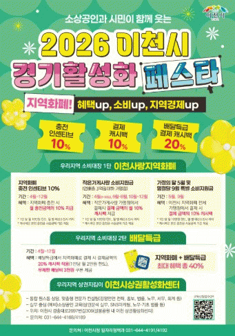 | ¡®2026 ÀÌõ½Ã °æ±âȰ¼ºÈ Æä½ºÅ¸¡¯·Î ¿¬Áß Áö¿ªÈÆó ÇýÅà ÆÎÆÎ¡¦ ÀÌõ°æÁ¦¿¡ º½¹Ù¶÷ ¡®Àμ¾Æ¼ºê+ij½Ã¹é¡¯ ¿¬Áß, ¿ù ÃÖ´ë 20% ÆÄ°Ý ÇýÅÿ¡ ½Ã¹Î¡¤¼Ò»ó°øÀÎ ¸ðµÎ ¡®È°Â¦¡¯ =ÇãÀº¼ ±âÀÚ |