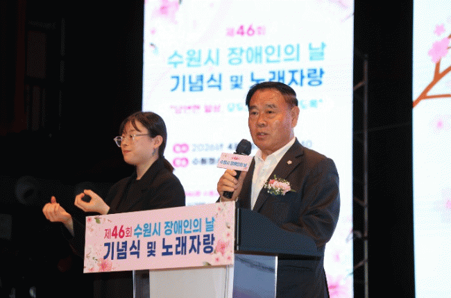 [NWS¹æ¼Û=Çѽ¸ñ ±âÀÚ]¼ö¿øÆ¯·Ê½ÃÀÇȸ´Â 16ÀÏ ¼ö¿øÃ»¼Ò³â¹®È­¼¾ÅÍ ¿Â´©¸®¾ÆÆ®È¦¿¡¼­ ¿­¸° 'Á¦46ȸ Àå¾ÖÀÎÀÇ ³¯ ±â³ä½Ä ¹× º¹Áö¹Ú¶÷ȸ'¿¡ Âü¼®ÇØ Àå¾ÖÀΰú ºñÀå¾ÖÀÎÀÌ ÇÔ²²ÇÏ´Â Æ÷¿ë»çȸÀÇ °¡Ä¡¸¦ °øÀ¯Çß´Ù.
