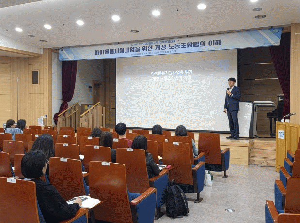 ¡®³ë¹«¹ýÀÎ »ó»ó¡¯ÀÇ Á¤ÇØ¸í ³ë¹«»ç°¡ ¡®¾ÆÀ̵¹º½Áö¿ø»ç¾÷À» À§ÇÑ °³Á¤ ³ëµ¿Á¶ÇÕ¹ýÀÇ ÀÌÇØ¡¯¸¦ ÁÖÁ¦·Î °­ÀÇÇß´Ù. °³Á¤µÈ ³ëµ¿Á¶ÇÕ¹ýÀÇ ÇÙ½É »çÇ× ºÐ¼®, ÇöÀå¿¡¼­ Àû¿ë °¡´ÉÇÑ Ã¼°èÀûÀÎ ³ëÁ¶ ´ëÀÀ ¾÷¹« °¡À̵å¶óÀÎ Á¦°ø, ½Ç¹«ÀÚµéÀÇ °íÃæÀ» ÇØ¼ÒÇϱâ À§ÇÑ ¸ÂÃãÇü ÁúÀÇÀÀ´ä µîÀ¸·Î ÁøÇàµÆ´Ù.