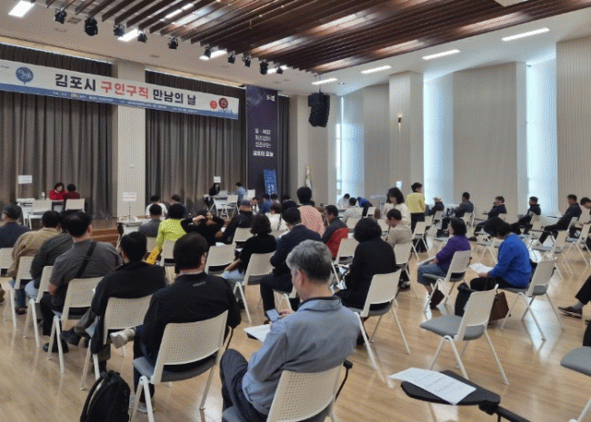 [NWS¹æ¼Û=ÇãÀº¼ ±âÀÚ]±èÆ÷½Ã°¡ Áö³ 16ÀÏ ±èÆ÷Á¦Á¶À¶ÇÕÇõ½Å¼¾ÅÍ ÄÁº¥¼ÇȦ¿¡¼ 'Á¦3ȸ ±¸ÀΡ¤±¸Á÷ ¸¸³²ÀÇ ³¯'À» ¿î¿µ, 106¸íÀÇ ±¸Á÷ÀÚ°¡ ÇöÀå ¸éÁ¢¿¡ Âü¿©Çß´Ù.