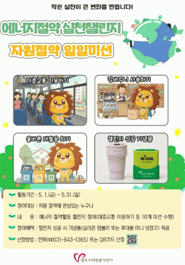 ÇÑÆí, ¿¡³ÊÁö Àý¾à ½Çõ 縰Áö ¡®ÀÚ¿øÀý¾à ÀÏÀϹ̼ǡ¯Àº À¯¼± ¶Ç´Â QRÄڵ带 ÅëÇØ ½Åû¹Þ°í ÀÖÀ¸¸ç, Âü¿© ¹× Ȱµ¿ °ü·Ã ¹®ÀÇ´Â ¾çÁÖ½ÃÀÚ¿øºÀ»ç¼¾Å͸¦ ÅëÇØ ¾È³»¹ÞÀ» ¼ö ÀÖ´Ù.