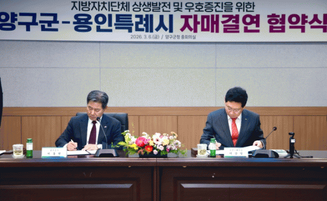 [NWS¹æ¼Û=Çѽ¸ñ ±âÀÚ]¿ëÀÎÆ¯·Ê½Ã´Â 6ÀÏ °­¿øÆ¯º°ÀÚÄ¡µµ ¾ç±¸±º°ú ÀڸŰῬÀ» Çϰí, µÎ µµ½ÃÀÇ ±³·ù¿Í ¹ßÀüÀ» À§ÇØ Àû±Ø Çù·ÂÇϱâ·Î Çß´Ù. ÀÌ»óÀÏ ½ÃÀåÀº À̳¯ ¾ç±¸±ºÃ» ÁßȸÀǽǿ¡¼­ ¼­Èï¿ø ±º¼ö¿Í µÎ µµ½Ã °£ ¿ìÀǸ¦ ÁõÁøÇÏ°í »óÈ£ ±³¡¦