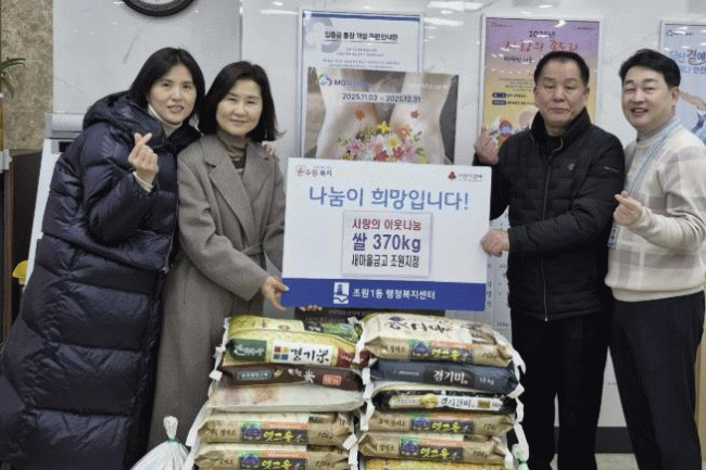 [NWS¹æ¼Û=Çѽ¸ñ ±âÀÚ]¼ö¿ø½Ã Àå¾È±¸ Á¶¿ø1µ¿ ÇàÁ¤º¹Áö¼¾ÅÍ´Â Áö³­ 3ÀÏ, ¼ö¿ø»õ¸¶À»±Ý°í Á¶¿øÁöÁ¡ÀÌ ¼³ ¸íÀýÀ» ¸Â¾Æ ¾î·Á¿î ÀÌ¿ôµéÀ» µ½±â À§ÇØ ½Ò 370kgÀ» ÈÄ¿øÇß´Ù°í ¹àÇû´Ù. À̹ø ±âºÎ´Â »õ¸¶À»±Ý°íÀÇ »çȸ°øÇå Ȱµ¿ÀÎ ¡®»ç¶ûÀÇ Á»µµ¡¦