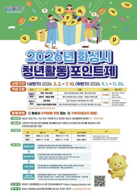 [»çȸ] È­¼ºÆ¯·Ê½Ã, 2026³â û³âȰµ¿Æ÷ÀÎÆ®Á¦ ½ÃÇà...¿¬°£ ÃÖ´ë 15¸¸ Æ÷ÀÎÆ® Áö±Þ |2026. 02.09