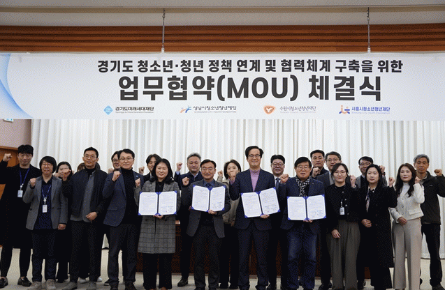 [NWS¹æ¼Û=Çѽ¸ñ ±âÀÚ]¼ö¿ø½Ãû¼Ò³âû³âÀç´ÜÀº 2¿ù 12ÀÏ, °æ±âµµ¹Ì·¡¼¼´ëÀç´Ü, ¼º³²½Ãû¼Ò³âû³âÀç´Ü, ½ÃÈï½Ãû¼Ò³âû³âÀç´Ü°ú ÇÔ²² ¡®°æ±âµµ û³â Á¤Ã¥ ¿¬°è ¹× Çù·Âü°è ±¸ÃàÀ» À§ÇÑ ¾÷¹«Çù¾à¡¯À» ü°áÇß´Ù. À̹ø Çù¾àÀº û¼Ò³â°ú û¡¦