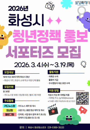 [»çȸ] È­¼ºÆ¯·Ê½Ã, 2026³â û³âÁ¤Ã¥ È«º¸ ¼­Æ÷ÅÍÁî ¸ðÁý |2026. 03.04