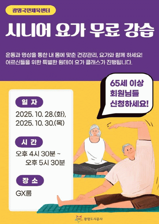 [»çȸ] ±¤¸íµµ½Ã°ø»ç ±¤¸í±¹¹ÎüÀ°¼¾ÅÍ, ½Ã´Ï¾î ¿ä°¡ °­½À ½Ç½Ã |2025. 11.06