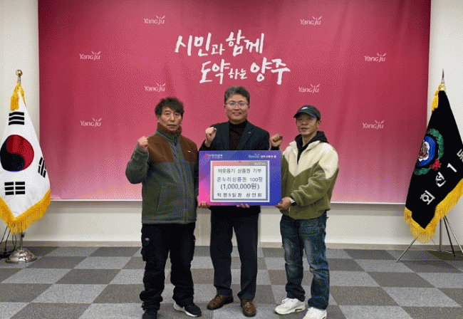 [NWS¹æ¼Û=Çѽ¸ñ ±âÀÚ]¾çÁֽà ´öÁ¤5ÀÏÀå ½ÃÀå»óÀÎȸ°¡ Áö³­ 17ÀÏ È¸Ãµ1µ¿ ÇàÁ¤º¹Áö¼¾Å͸¦ ¹æ¹®ÇØ °ü³» Ãë¾à°èÃþÀÇ µû¶æÇÑ ¿¬¸»³ª±â¸¦ Áö¿øÇϰíÀÚ 100¸¸ ¿ø »ó´çÀÇ ¿Â´©¸®»óǰ±ÇÀ» ±âºÎÇß´Ù. ´öÁ¤5ÀÏÀå »óÀÎȸ´Â ¸Å³â ¿¬¸» ¿Â´©¸®»óǰ±Ç¡¦