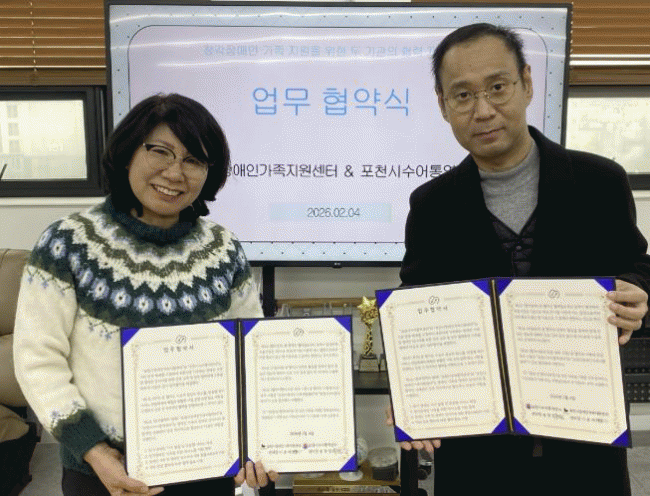 [NWS¹æ¼Û=Çѽ¸ñ ±âÀÚ]Æ÷õ½ÃÀå¾ÖÀΰ¡Á·Áö¿ø¼¾ÅÍ´Â Áö³­ 4ÀÏ Æ÷õ½Ã¼ö¾îÅ뿪¼¾ÅÍ¿Í ³óÀÎ(û°¢Àå¾ÖÀÎ) °¡Á·ÀÇ º¹Áö ÁõÁø°ú ¼­ºñ½º Á¢±Ù¼º °­È­¸¦ À§ÇÑ ¾÷¹«Çù¾à(MOU)À» ü°áÇß´Ù. À̹ø Çù¾àÀº û°¢¡¤¾ð¾îÀå¾Ö °¡Á·ÀÌ Àϻ󿡼­ °Þ´Â Á¤º¸ ¡¦